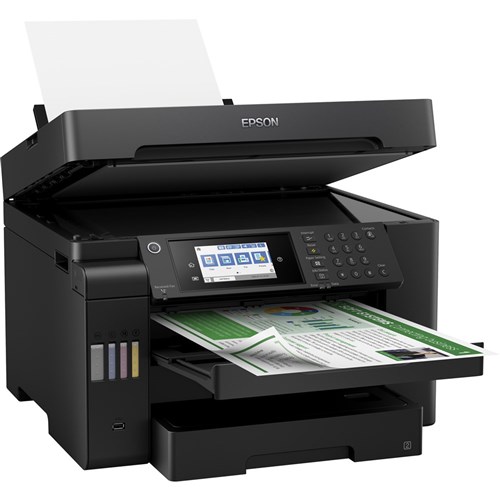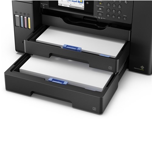 The wide-format Epson WorkForce ET-16600 EcoTank wireless all-in-one printer offers revolutionary cartridge-free printing with easy-to-fill super-sized ink tanks Copy and Scan pages up to A3 size 500-sheet paper capacity 4.3 Inch Colour touchscreen for easy navigation