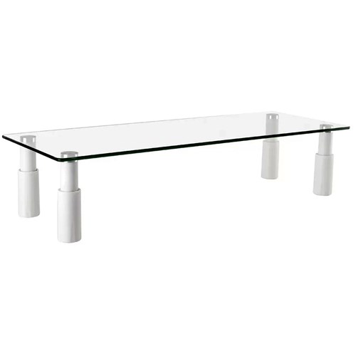 Ergovida Glass Top Monitor Stand Rectangular With Four Height Adjustable White Legs