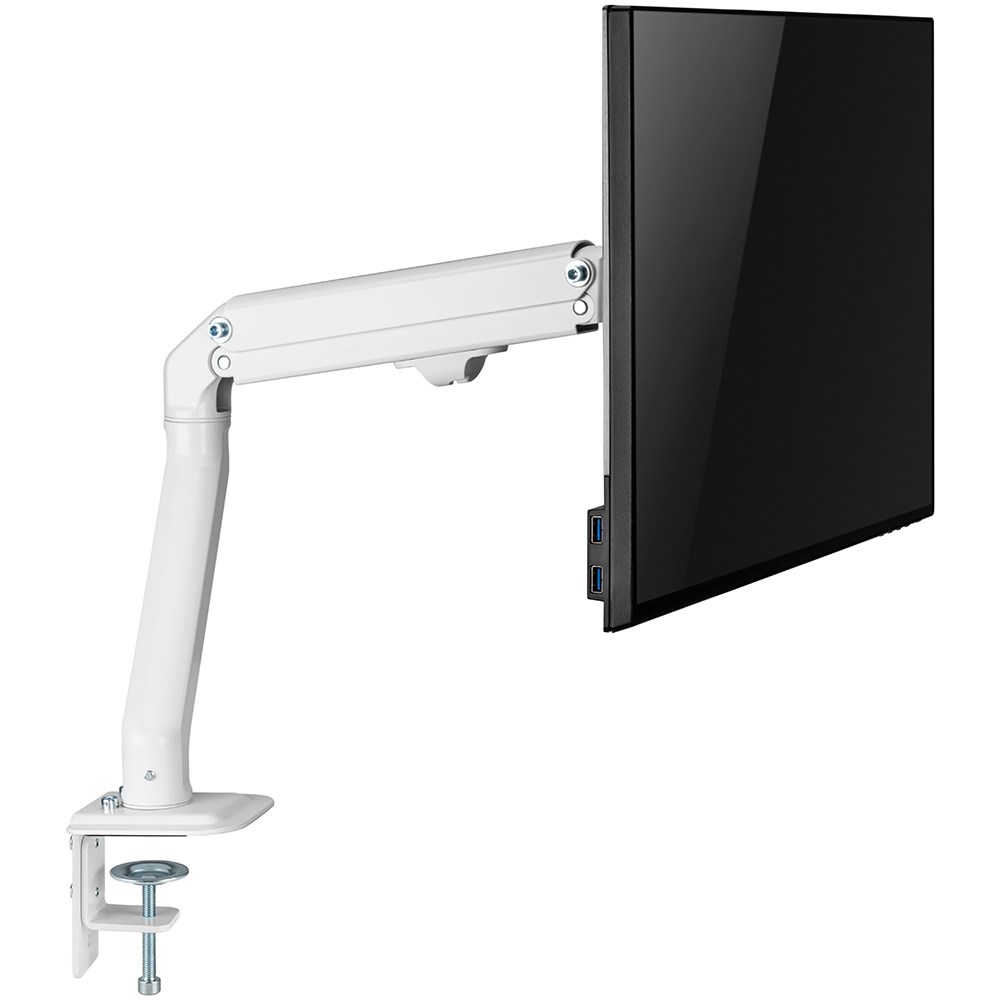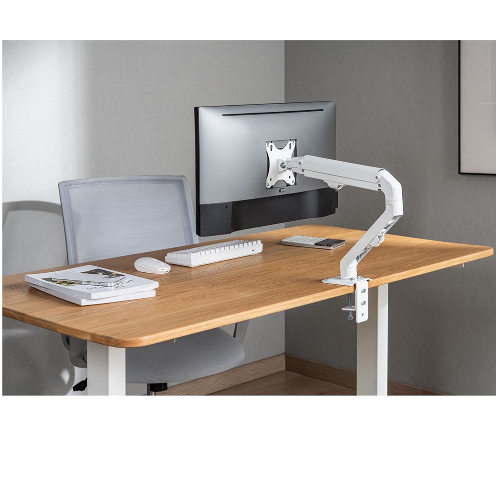 Premium mechanical spring ensure long lasting product while contributing to a slimmer and more elegant design. Dynamic adjustment - pan, tilt and rotate the monitor to any desired position. Keyhole Pattern VESA Slot for quick attachment and detachment. VESA compatible 75mm x 75mm and 100mm x 100mm. Suits screen sizes 17 inch to 27 inch. Weight capacity 2kg to 7kg. Comes with grommet and clamp attachment. Cable management. 247W-303mmW, 108-417mmH, Tilt range +90 degrees to -45 degrees, Swivel range +90 degrees to -90 degrees, Screen Rotation +180 degrees to -180 degrees.