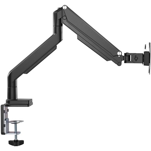 Clamp and grommet mounts to most any style desktop. Wide range of adjustments frees-up workspace. Rear tool holder easy access for any future adjustment. Effortless gas spring design adjusts easily to the most comfortable viewing position. Detachable VESA Plate for a quick and easy installation. VESA compatible 75mm x 75mm and 100mm x 100mm. Built-in Cable Management for an organised and neat workspace. Fits screen sizes 17inch to 32 inch. Weight capacity 1kg - 9kg. 255-315mmW, 175-505mmH, Tilt range +90 degress to -90 degrees, Swivel range +90 degrees to -90 degrees, Screen Rotation +90 degress to -90 degrees.