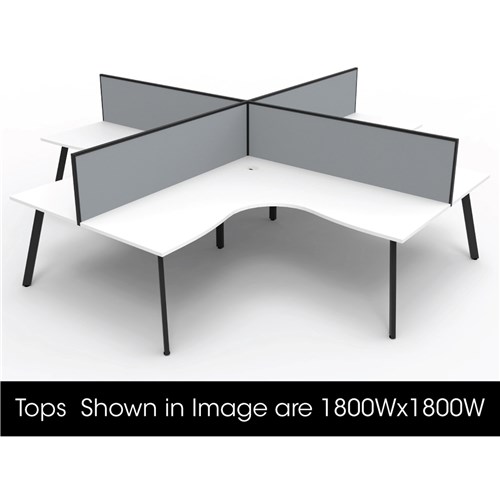 Eternity Corner Workstation 1800Wx1500Wx750D 4 Person White Top Black Quad Frame