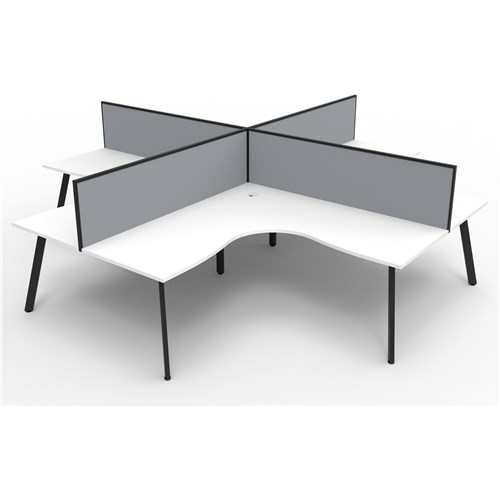 Eternity Corner Workstation 1800Wx1800Wx750D 4 Person White Top Black Quad Frame