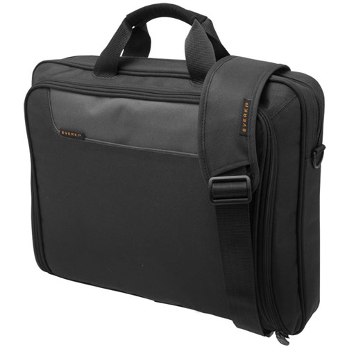 Accommodates up to 16 inch laptops Extra-padded ergonomic non-slip shoulder pad Trolley handle pass-through strap Separate zippered accessory compartment and front stash pocket Backed by Everki Limited Lifetime Warranty