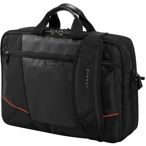 Felt-lined iPad/Kindle/Tablet pocket. Well-organised compartments. Trolley handle pass-through strap. Backed by Everki lifetime warranty.