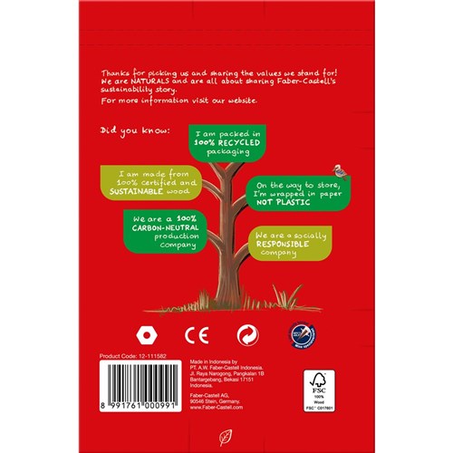 FSC-certified wood from sustainable forestry. 100% recycled packaging to protect more trees. Wrapped in paper (not plastic) during transport to reduce pollution. Wooden hexagonal barrels are comfortable and prevent rolling. 2.2mm leads use secural bonding (SV) process for high break-resistance, reducing sharpening time. Soft, rich graphite leads provide smooth, dark laydown. Suitable for all kinds of sketching, drawing and writing. Non-toxic and safe for kids to use.