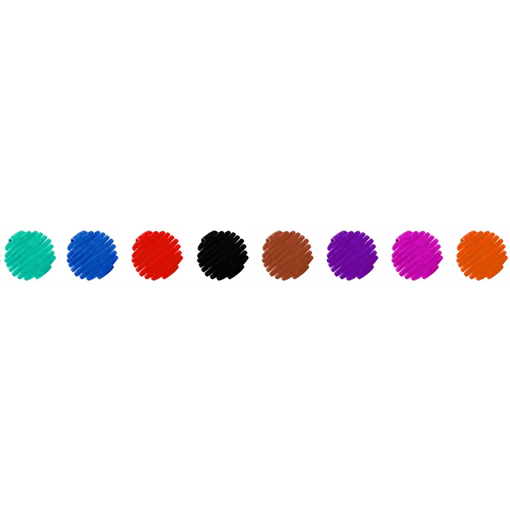 • 8 bright, vibrant colours in Red, Pink, Orange, Green, Blue, Violet, Brown and Black