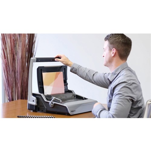 Full-size premium comb binder for the largest comb binding applications. Electronically punches up to 28 sheets of paper at a time (80gsm). Satellite removable binding platform allows multiple users to punch and bind simultaneously. 2 year warranty.