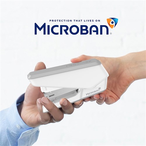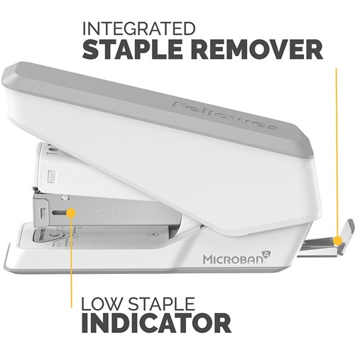 Effortlessly staples up to 25 sheets. Durable construction and jam-free design. Microban® antibacterial technology works 24/7 for an added level of hygienic product protection. Includes a detachable staple remover, paper alignment guide and soft-grip handle. Low staple indicator window. Compatible with 24/6 and 26/6 staples. 3 Years Manufacturer's Warranty.