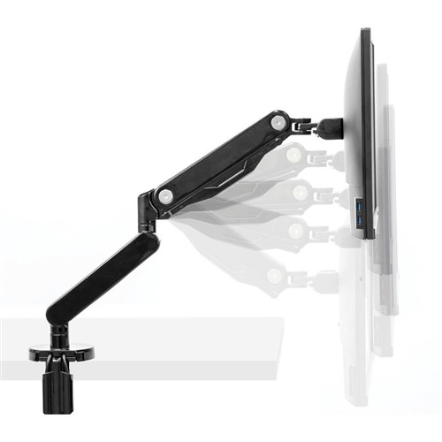 Fully independent adjustable monitor arm with innovative gas spring technology allows for effortless monitor adjustment. Intuitive cord management system helps minimize clutter. 2 USB ports located at the base of the product make it easy to connect your favourite devices. Easy to mount . Each arm holds a monitor up to 30 inch and 9kg. Delivery, installation and assembly charges may apply to furniture. Please enquire to confirm.