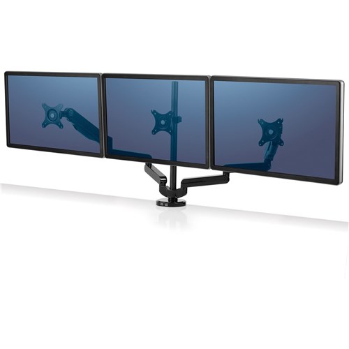 • Easily mounted via clamp or grommet, each arm holds a monitor up to 9kg (up to 27 inch monitors) and meets VESA mounting standards.