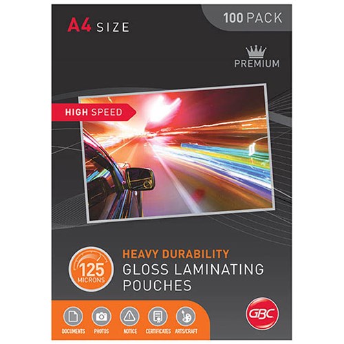 Gbc Laminating Pouches A4 125 Micron High Speed Pack Of 100