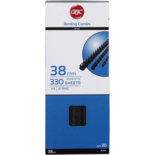 Gbc Plastic Binding Comb 38Mm 21 Ring 375 Sheets Capacity Black Pack Of 20