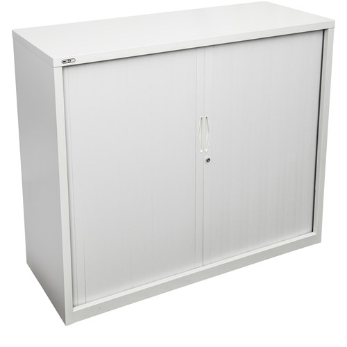 • Go Tambour Door Cupboard White Satin H1016Xw900Xd470Mm Shelves Not Included