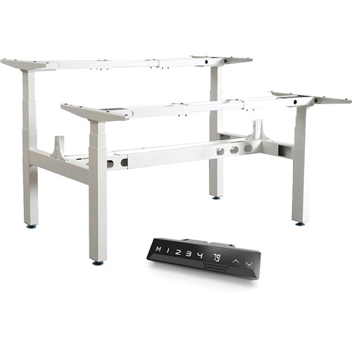 Back to back desk system 3 stage leg with 4 motor activation, heavy duty steel construction ensuring increased stability Expandable framework for various top panel lengths, 3 stage memory storage height adjustment using a push button, auto stop function if the desk encounters a obstacle on the way down Dynamic load push: 600N each leg, maximum lift capacity is 120kg each desk, speed at full load: 35mm/S Lowest position: 593mm (Not including top), highest position: 1,243mm (Not including top) Minimum extension length: 1,800mm, minimum depth of the desktop recommended is 600mm Available as standard in White, with Black and Grey, suits Top panel Sizes = 2,100mm, 1,800mm, 1,500mm, 1,200mm x 700mm (Or any size between. Minimum depth of the desktop recommended is 600mm) All adjustments for the height are infinitely locking, 25mm thick table top is a suggested thickness, solid steel frame construction with a powder coated finish Some assembly required AFRDI Approved