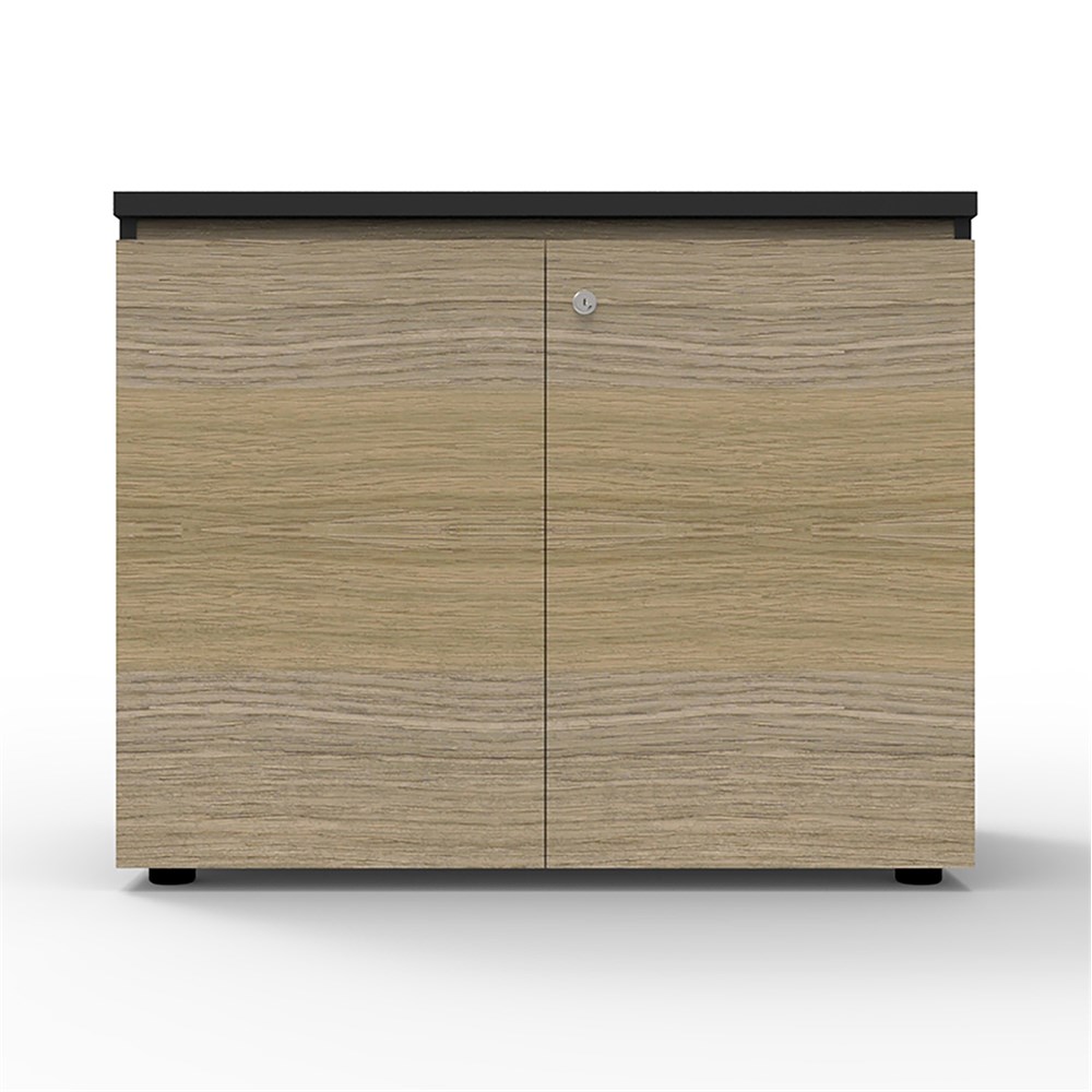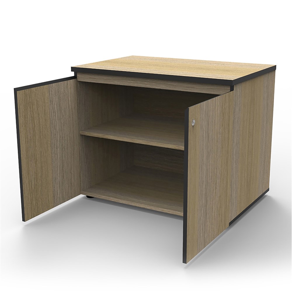 Deluxe Infinity Swing 2 Door Cupboard 900mm W x 600mm D x 730mm H Shark Nose Feature On Top Door Front For Easy Opening Lockable, Supplied With 2 x Keys Finished In Laminate With Black Rigid Edging Adjustable Levelling Feet