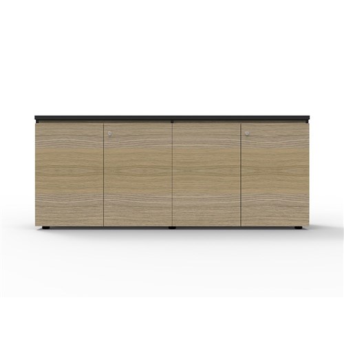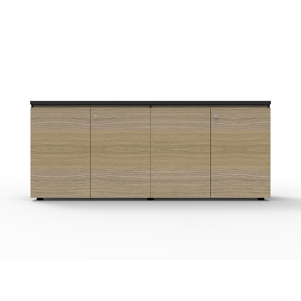 Deluxe Infinity Swing 4 Door Cupboard 1800mm W x 450mm D x 730mm H Shark Nose Feature On Top Door Front For Easy Opening Lockable, Supplied With 2 x Keys Finished In Laminate With Black Rigid Edging Adjustable Levelling Feet