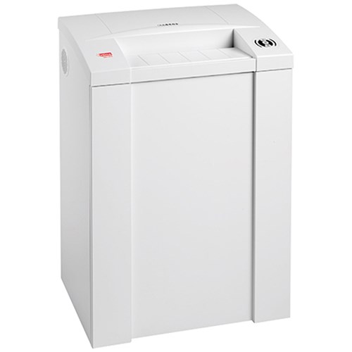 3.8 x 30mm cross cut paper shredder. 20 sheets at a pass. 405mm wide throat opening. Separate cutting unit for CD's. Slide out 130 litre waste bin. Auto Reverse. Acceptrs paper clips pins and staples. 20 year cutter warranty. LED display.