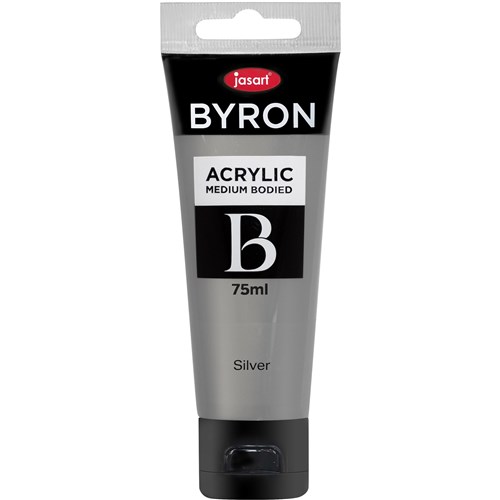 Jasart Byron is a medium bodied acrylic The colours are bright, intense and permanent after they have dried Can be used on most surfaces such as paper, canvas, wood, glass, plastic and more Warm and Cool Primary colours will allow you to have a superior colour mixing Non toxic 75ml tubes available in 30 colours including 4 fluoro colours and 2 metallic colours Each individual tube is foil sealed Also available in 1 Litre bottles in 23 colours including 2 metallic colours.