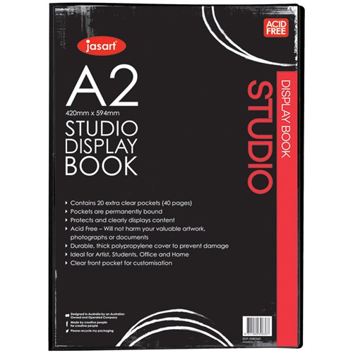 Contains 20 clear pockets Pockets permanently bound 0.75mm cover made from durable, thick polypropylene to prevent damage Protects and clearly displays content Acid Free: will not harm your valuable photographs, documents and artworks Ideal for Artist, Students, Office and Home Clear front pocket for customisation Available in A2, A4, A3 and A5