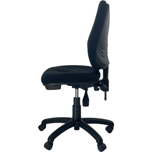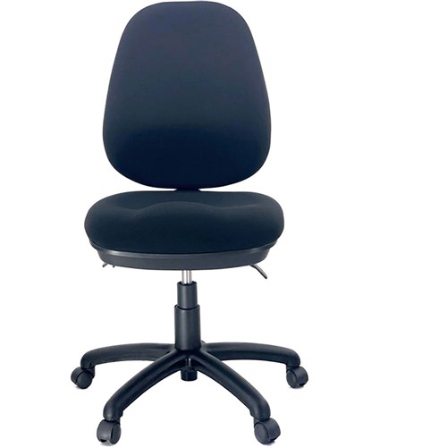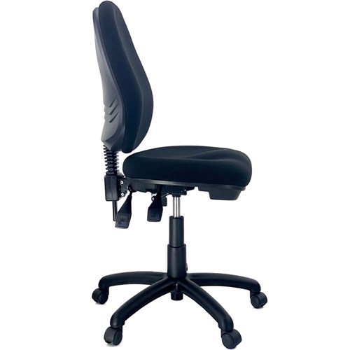 Weight Rating: 120kg. Chair Dimension: Seat Width 500mm, Seat Depth 460mm, Back Height: 520mm. Unit Weight: 12Kg. NTR Commercial Grade Fabric Black Back and Moulded Seat Foam for Supreme Comfort. 3 Lever Easy to Use Heavy Duty Manual Mechanism. 5 Way 640mm Commercial Grade Nylon Base. Heavy Duty Gas Lift Cylinder. Fire Retardant Contoured Moulded Foam. 5 Years Manufacturer's Warranty. Delivery, installation and assembly charges may apply to furniture. Please enquire to confirm.