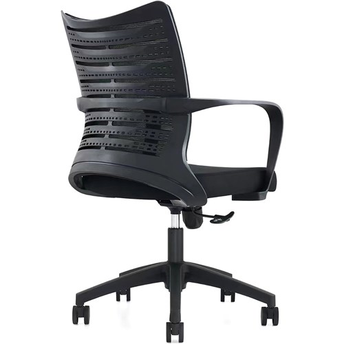 • Black plastic back panel with high quality mesh and High Density Seat Cussion.