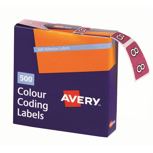 Avery Numeric Coding Label 8 Side Tab 25X38Mm Mauve Pack Of 500