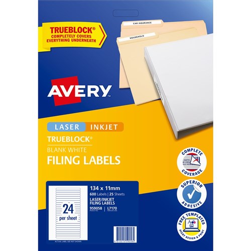 • Size: 134x11mm 600 labels, 25 sheets. 24 labels per sheet (24UP).