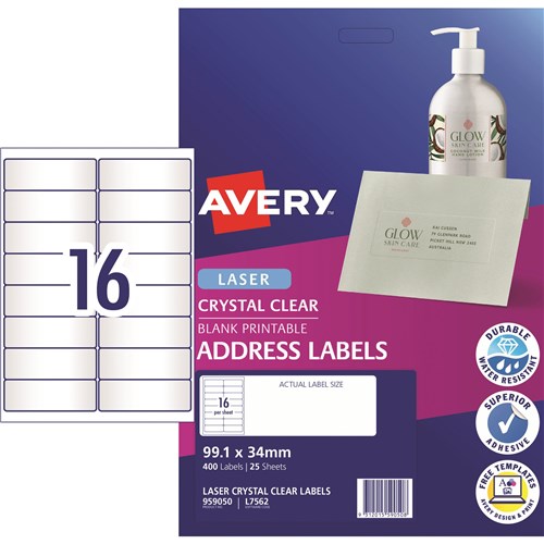 Laser Label L7562 16 (Per Page) 99.1X34Mm Clr (25)
