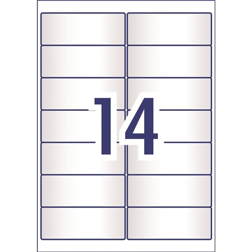 • Size: 99.1x38.1mm 350 labels, 25 sheets. 14 labels per sheet (14UP).