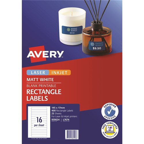 • Size: 145x17mm 400 labels, 25 sheets. 16 labels per sheet (16UP).