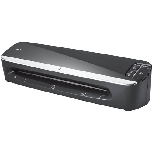 Sturdy A3 Laminator ideal for school or office.Reverse function allows you to release incorrectly inserted pouches.Control buttons for easy selection of pouchLaminates pouches 80 -125 micron.4 roller Hot or Cold lamination.Warm up time 1 minute.Lamination speed 480mm/min.Includes 10 laminating pouches.Dimensions: 470W x 146D x 123mmH.2 Year Manufacturer's Warranty.