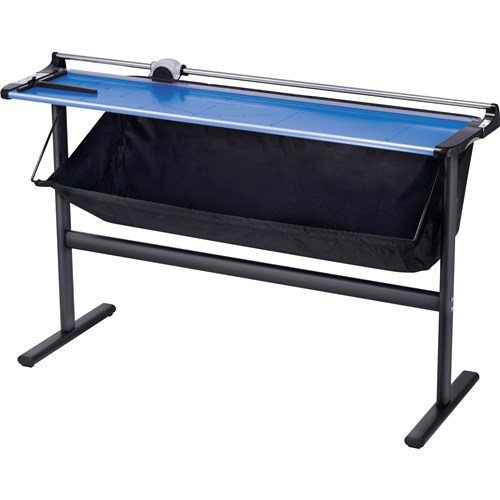 Strong and sturdy solid metal cutting base Ergonomic replaceable cutting head with self-sharpening rotary blade Transparent hand guard clamps on to paper while cutting Adjustable paper guide, Scale marking with DIN paper sizes Includes sturdy steel stand (assembly required) Cuts up to 7 sheets (80gsm paper)