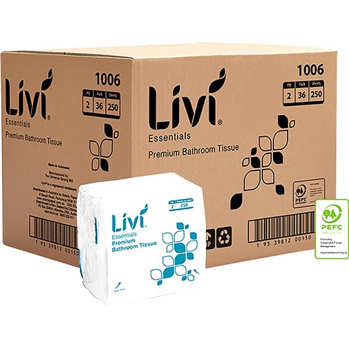 The Livi Essentials interleave 2ply toilet paper, you can enjoy both strength and comfort. There are 250 sheets per pack and 36 units in a carton, giving you plenty of toilet paper for a great price. The toilet paper is made from virgin pulp as well, and fits a standard toilet roll, so you know you will be getting excellent quality