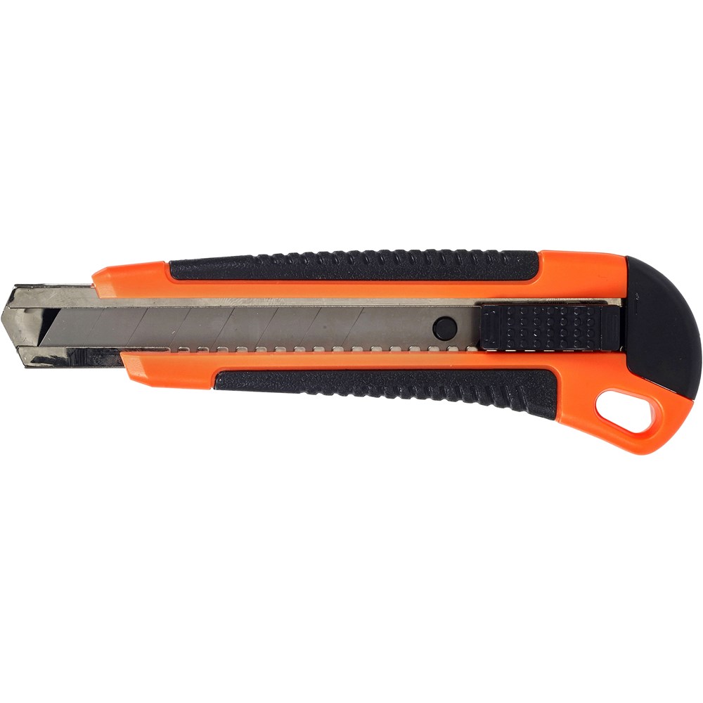 Solid case with metal sleeve for general or heavy duty use Auto locking mechanism for safety Snap off blades for easy use 2 spare blades supplied with each cutter