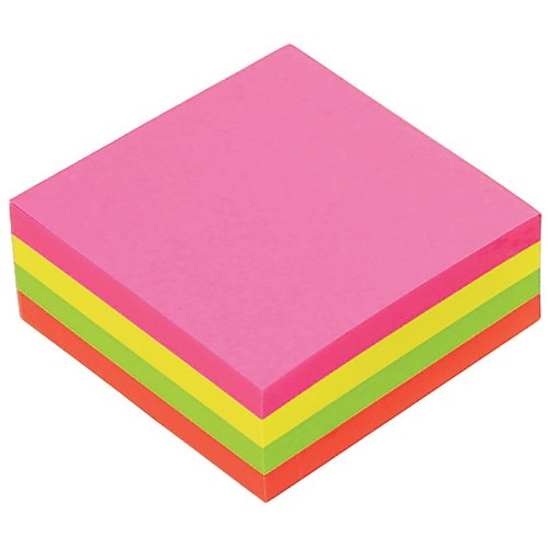 High quality, self-stick repositionable notes that re-stick again and again. Bright colours to ensure notes/messages stand out. Brilliant cube - 320 bright neon sheets. 4 colours of 80 sheets each (bright pink, yellow, lime green & orange).