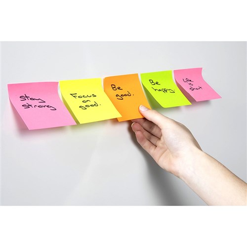High quality, bright neon repositionable notes that restick again and again. Bright neon ensures your messages always stand out and adds urgency to your notes Assorted pack of 5 includes 2x pink, 1x green, 1x yellow, 1x orange.
