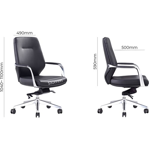 Weight Rating: 150kg. Executive Knee Tilt Synchro Mechanism - 4 Locking Positions. Chair Dimension: Seat Width 475mm, Seat Depth 505mm, Back Height: 670mm, Overall Height 1000 - 1100mm. Indicative Seating Time: 8 hours. Premium PU Leather Upholstery in Black. Aluminium Arms with Genuine Leather Padding. Class 4 HD gas lift and Luxury Alloy Base. 60mm Executive PU castors. 5 Years Manufacturer's Warranty. Delivery, installation and assembly charges may apply to furniture. Please enquire to confirm.