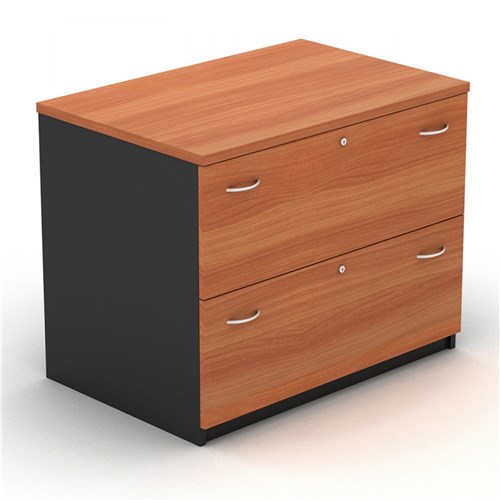 Om Lateral Filing Cabinet W900 X D600 X H720Mm 2 Drawer Cherry Charcoal