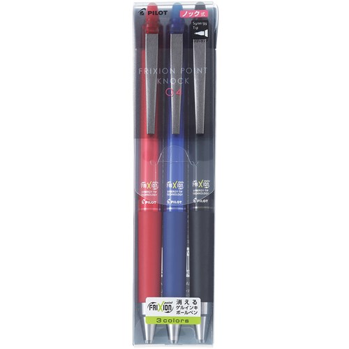 Pilot Frixion Point Knock Pen 0.4Mm Synergy Tip Assorted Colours Wallet Of 3