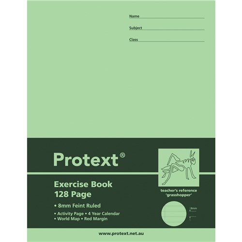 Protext Exercise Book 8Mm Ruled 225Mm X 175Mm 128 Page Grasshopper