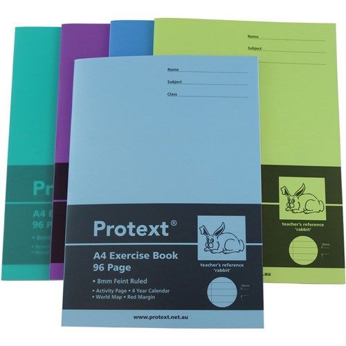 Protext long lasting PP cover. Bright, mixed colours. 4 year calendar, activity page, maths tables & red margin. Quality white bond paper.