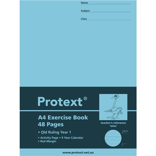 Protext Exercise Books brighten up every school day Protext means Protect the text and each book features a durable, coloured polypropylene cover that eliminates the need for book covering Packed with features including high quality bond paper and crisp line rulings, Protext is a must for every classroom QLD ruled books have red and blue lines with a red margin