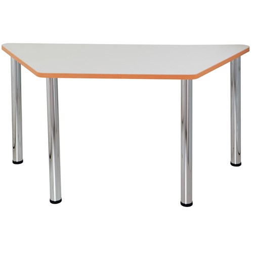 • 25mm tops are parchment (off-white) with a commercial grade rigid ply edging to take the knocks. Modern chrome legs.