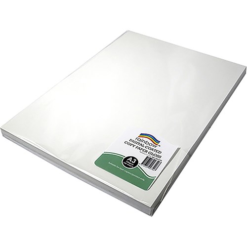 Rainbow Gloss paper is available in A3 and A4 sizes and an array of weights. Suitable for high speed and laser printers. FSC Certified. Acid Free.