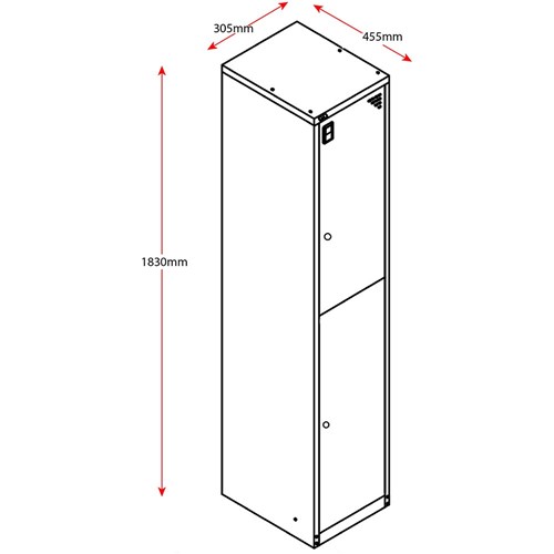 Riveted Construction for Extra Strength. Fitted with Coat Hook to each Compartment. Ventilation on Door. No Assembly required. Unit Dimension: 1830mm H x305 mm W x 455 mm D. 10 Year Manufacturer's Warranty.
