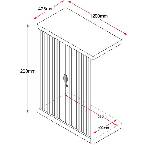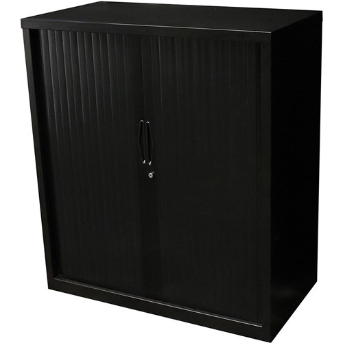 • Rapid Go Tambour Door Storage Cupboard No Shelves Included 1200Hx1200Wx473Mmd Black
