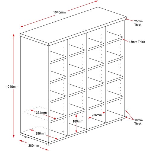Adjustable Shelves. E0 Enviroboard. Unit Dimension: 1040mm H x1040 mm W x 380 mm D. 5 Year Manufacturer's Warranty.