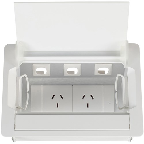 Lid Closes to Obscure Power and Data Points. Links to Wall Starter or Power Pole Kit. Use in Conjunction with SW Duct to Avoid Trip Hazard. Unit Dimension: 211.5mm W x 154mm D x 115mm H. 2 Year Manufacturer's Warranty.