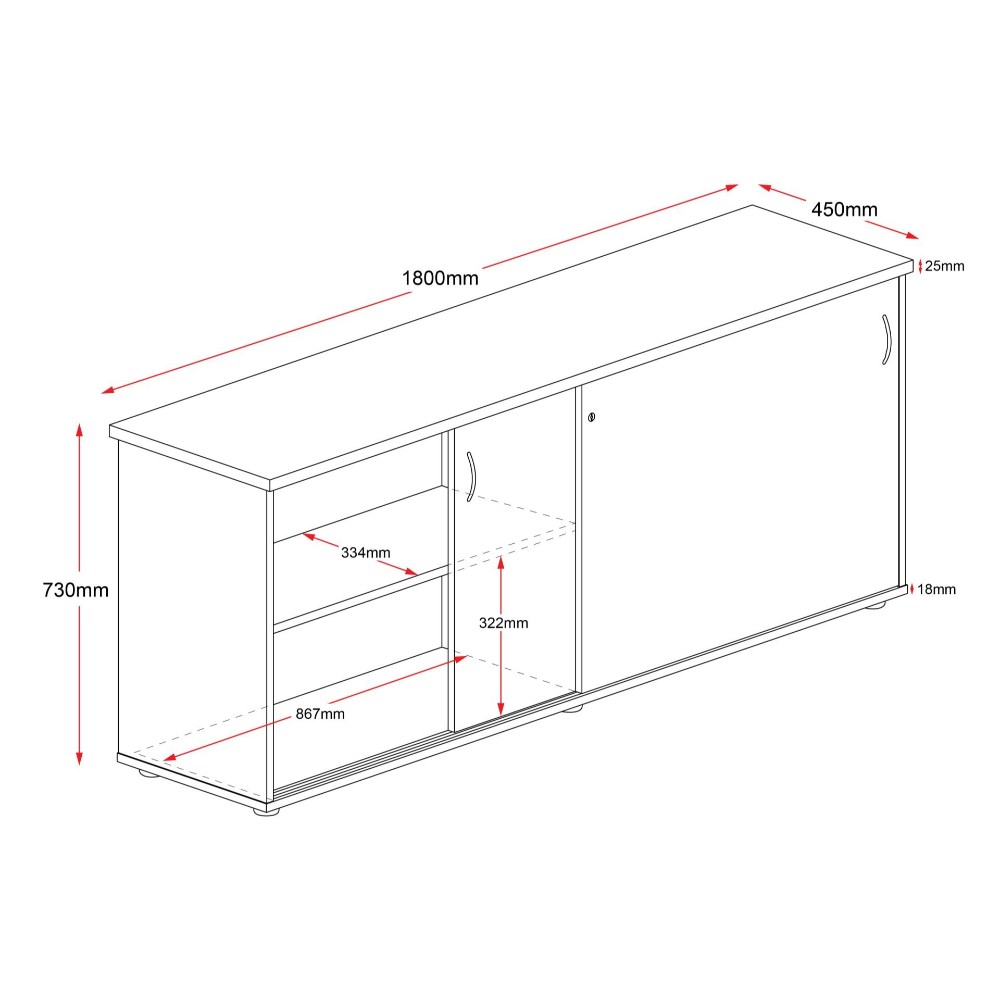 Rapid Worker Credenza Sliding Doors 730Hx1800Wx450D Cherry And Ironstone
