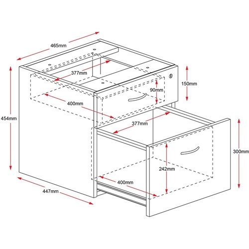 Lockable Drawers Extra. E0 Enviroboard. Unit Dimension: 454mm H x465 mm W x 447 mm D. 5 Year Manufacturer's Warranty.